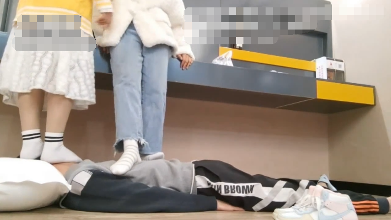 00后蕬小乃双人肉丝袜虐踩深喉保养脚趾